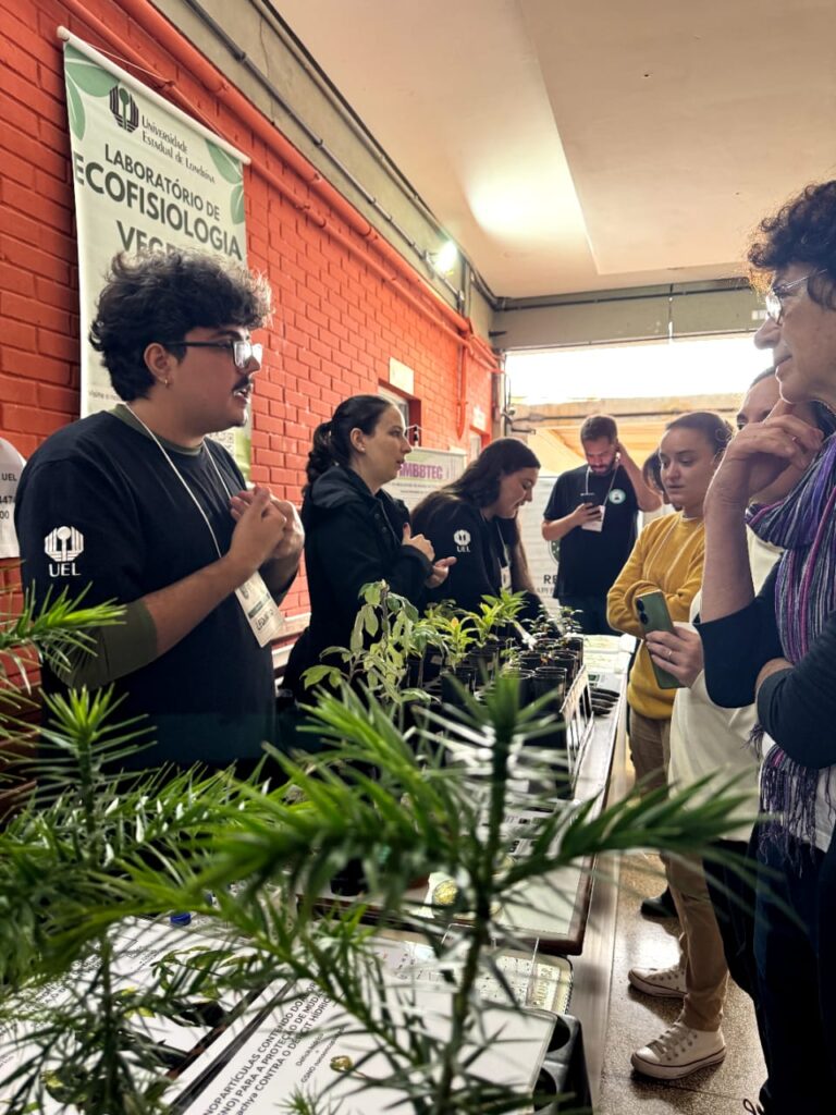 Para finalizar, os participantes realizaram visitas a estandes de pesquisas desenvolvidas no NAPI Biodiversidade: RESTORE e em instituições parceiras, como o Viveiro Flora Londrina e o Parque Estadual Mata dos Godoy.